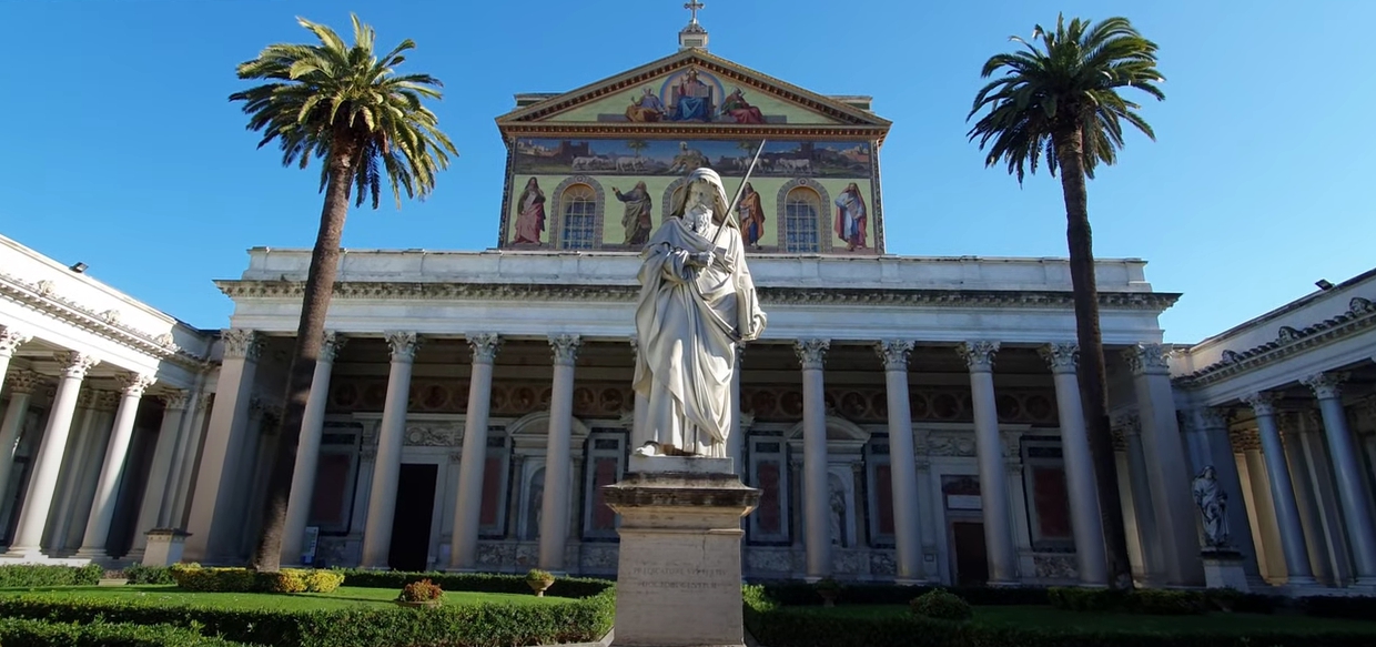 성 밖의 성 바오로 대성당은 이탈리아어로 "Basilica Papale di San Paolo fuori le Mura"로 알려져 있으며 로마의 4대 교황 대성당 중 하나이자 세계에서 가장 중요한 기독교 유적지 중 하나입니다. 풍부한 역사, 건축학적 웅장함, 영적 중요성으로 인해 이곳은 기독교 예술과 건축 연구뿐 아니라 초기 기독교 확산에 중요한 요소가 되었습니다. 대성당의 기원은 콘스탄티누스 황제가 성 바오로의 무덤으로 추정되는 장소에 작은 교회를 지은 4세기로 거슬러 올라갑니다. 이 장소는 아우렐리아누스 성벽에서 약 2마일 떨어진 비아 오스티엔시스(Via Ostiensis)를 따라 있었기 때문에 "성벽 바깥"이라는 이름이 붙었습니다. 서기 324년에 완성된 원래의 대성당은 규모가 작았습니다. 그러나 순례자 수가 늘어나면서 곧 부족하다고 판단되었습니다. 서기 386년에 테오도시우스 1세 황제는 더 큰 대성당 건설을 시작했고, 이 대성당은 서기 395년 호노리우스 황제 치하에서 완성되었으며, 훨씬 더 웅장하여 당시 세계에서 가장 큰 교회 중 하나였습니다. 대성당은 중세 시대에 걸쳐 수많은 복구과정을 거쳤으며, 8세기에 이르러 이곳은 인기 있는 순례지가 되었습니다.