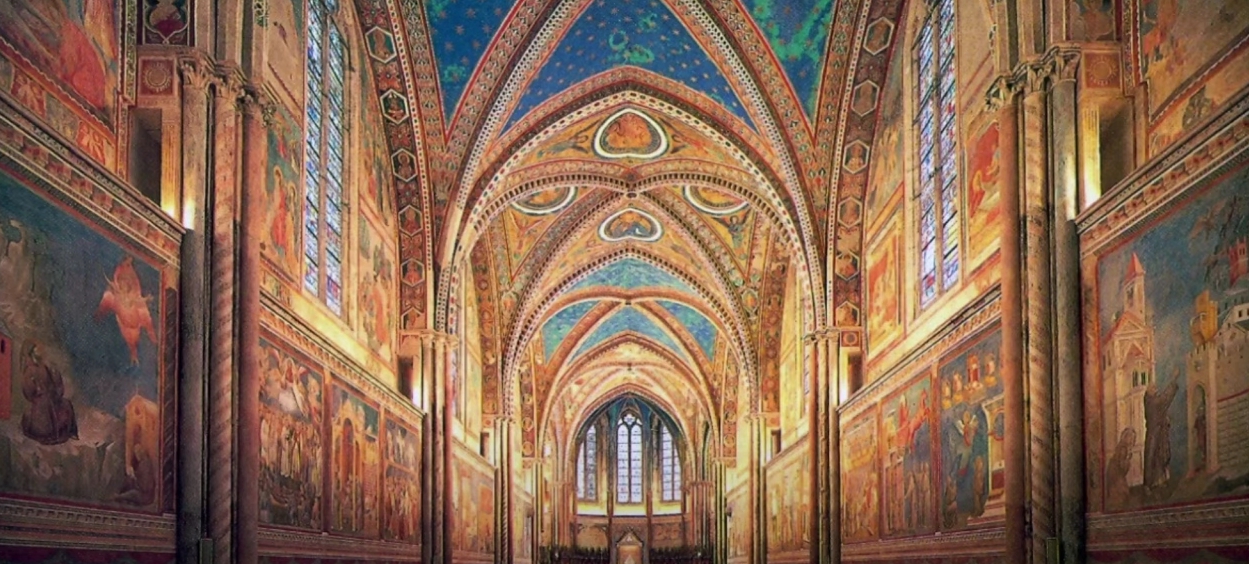 성 프란치스코 대성당(Basilica of Saint Francis of Assisi)은 이탈리아 아시시(Assisi)에 위치한 로마 가톨릭 교회로, 성 프란치스코의 생애와 신앙을 기리기 위해 세워졌습니다. 성 프란치스코가 1226년에 사망한 후, 교황 그레고리오 9세는 프란치스코의 성인 시성을 빠르게 진행시켰고, 1228년에는 그의 유해를 모시기 위한 대성당 건축을 명령했습니다. 성 프란치스코 대성당은 1228년에 착공되어 1253년에 완공되었습니다. 이 대성당은 프란치스코 수도회의 중심지로, 그의 가르침과 정신을 기리기 위한 중요한 장소로 자리 잡았습니다. 성 프란치스코 대성당은 중세 유럽의 신앙과 예술의 중심지로서 중요한 의미를 지니고 있습니다. 상부 성당은 고딕 양식으로 지어졌으며, 성 프란치스코의 영광과 가르침을 기리기 위한 화려한 장식과 웅장한 구조를 자랑합니다. 상부 성당의 주요 특징 중 하나는 높은 아치형 천장과 넓은 창문을 통해 들어오는 자연광입니다. 이러한 구조는 중세 고딕 건축의 전형적인 요소로, 성당 내부를 밝고 성스러운 분위기로 만들어 줍니다.